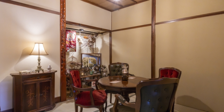 府中市で令和3年度から始まった、地域の活性化を目的とした「空き家リバイバルプロジェクト」を活用して改装した。 2023年、広島市から府中市へ移住、お店をオープンさせた。店内のインテリアは、これまで大切に集めてきたもの。アンティークならではの味わいが、町の記憶とともに静かな時間と心地よい空気をつくっている。